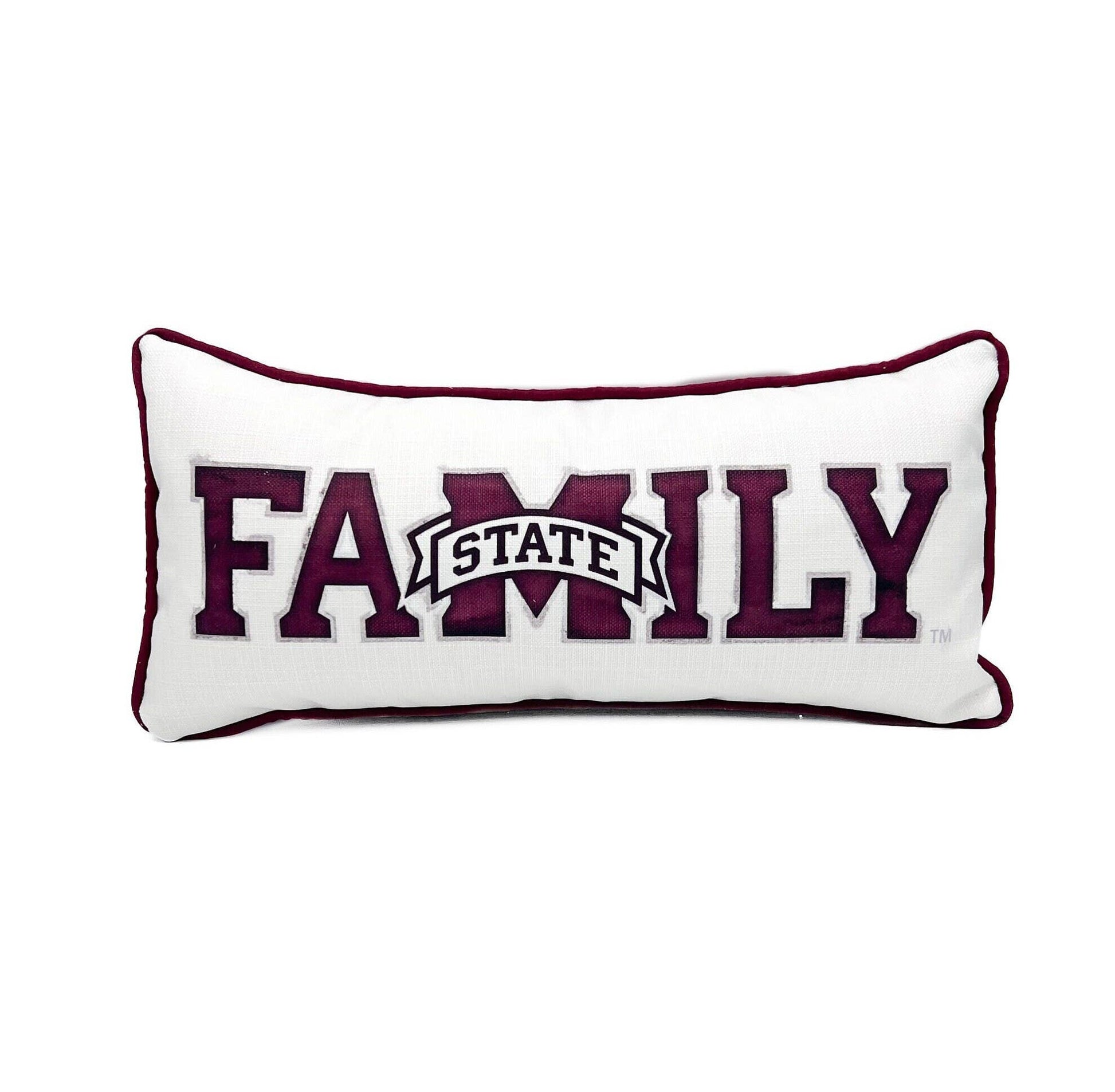 MS State Family Pillow with Maroon Cording